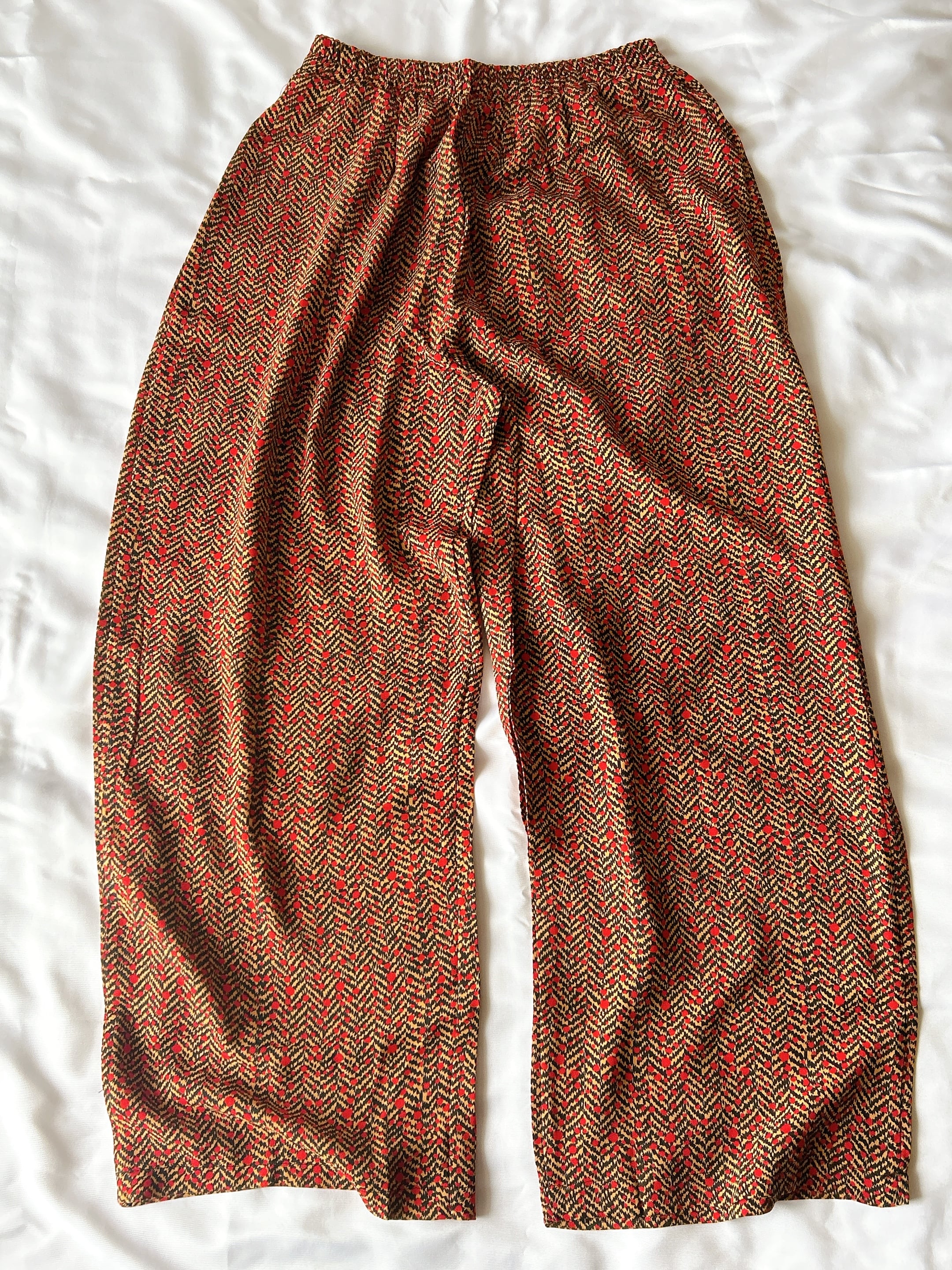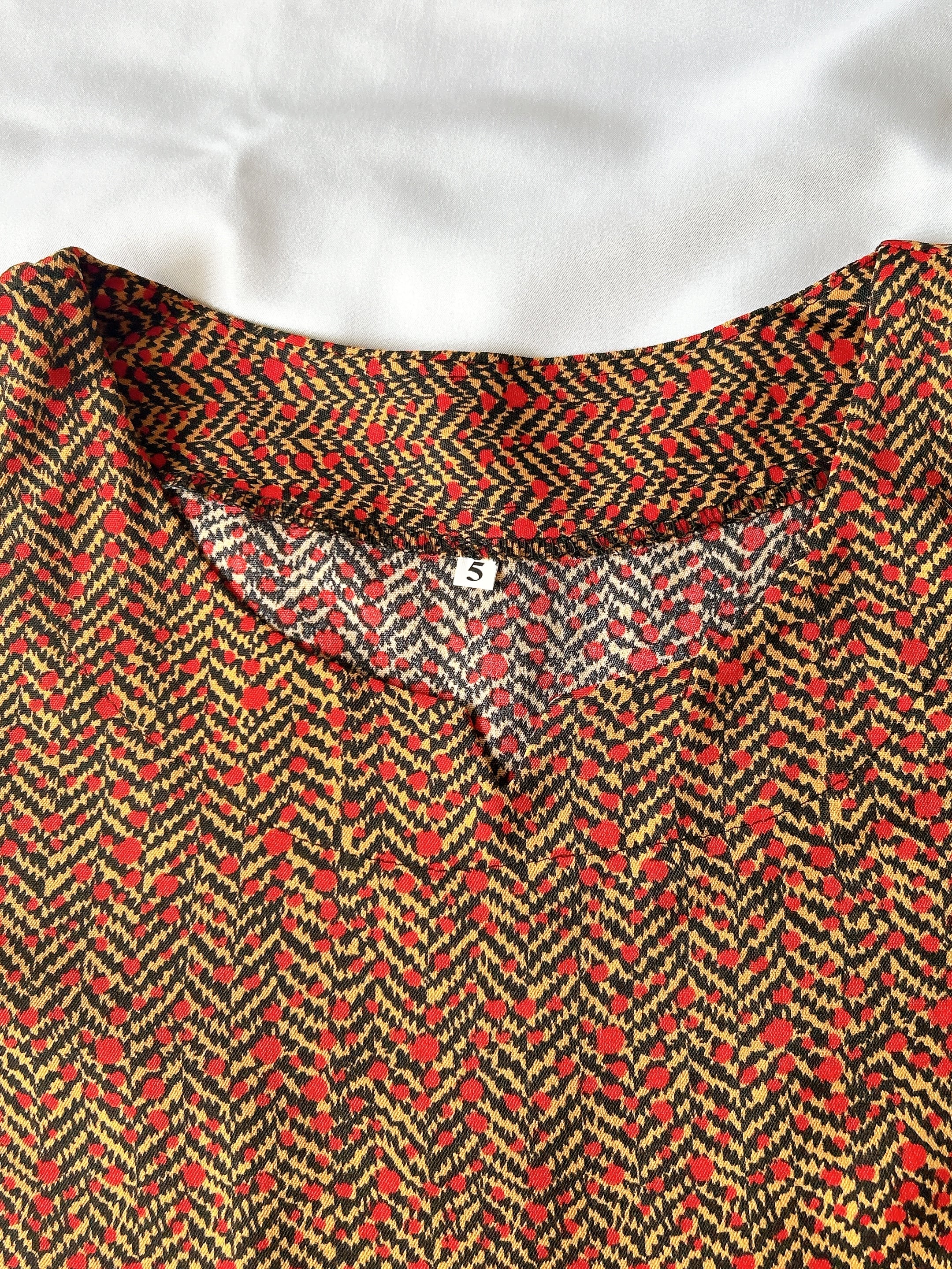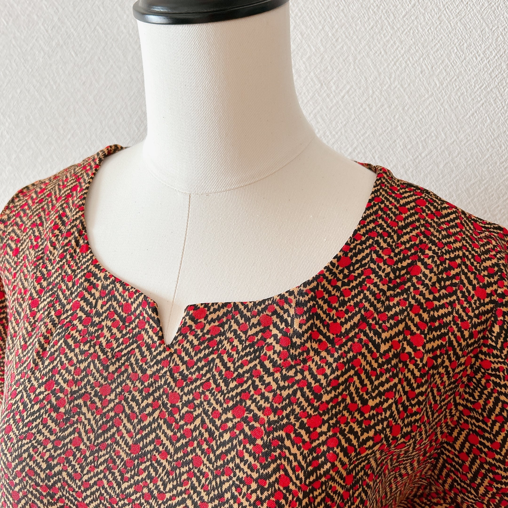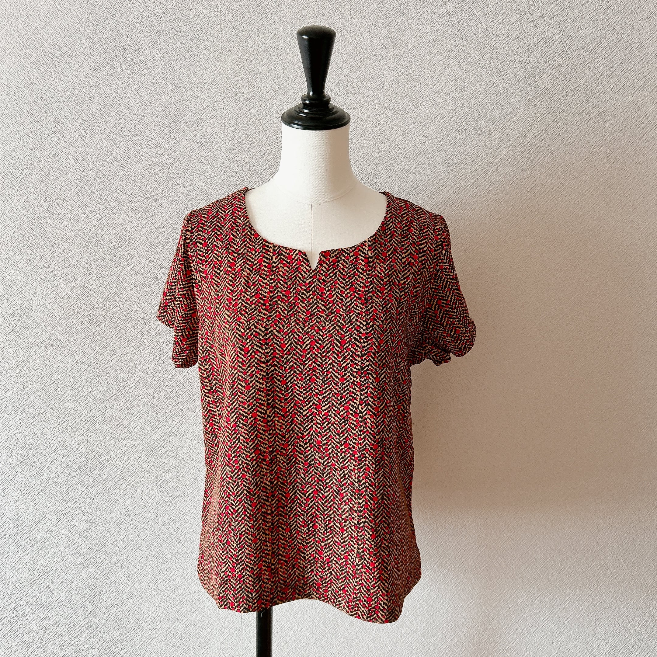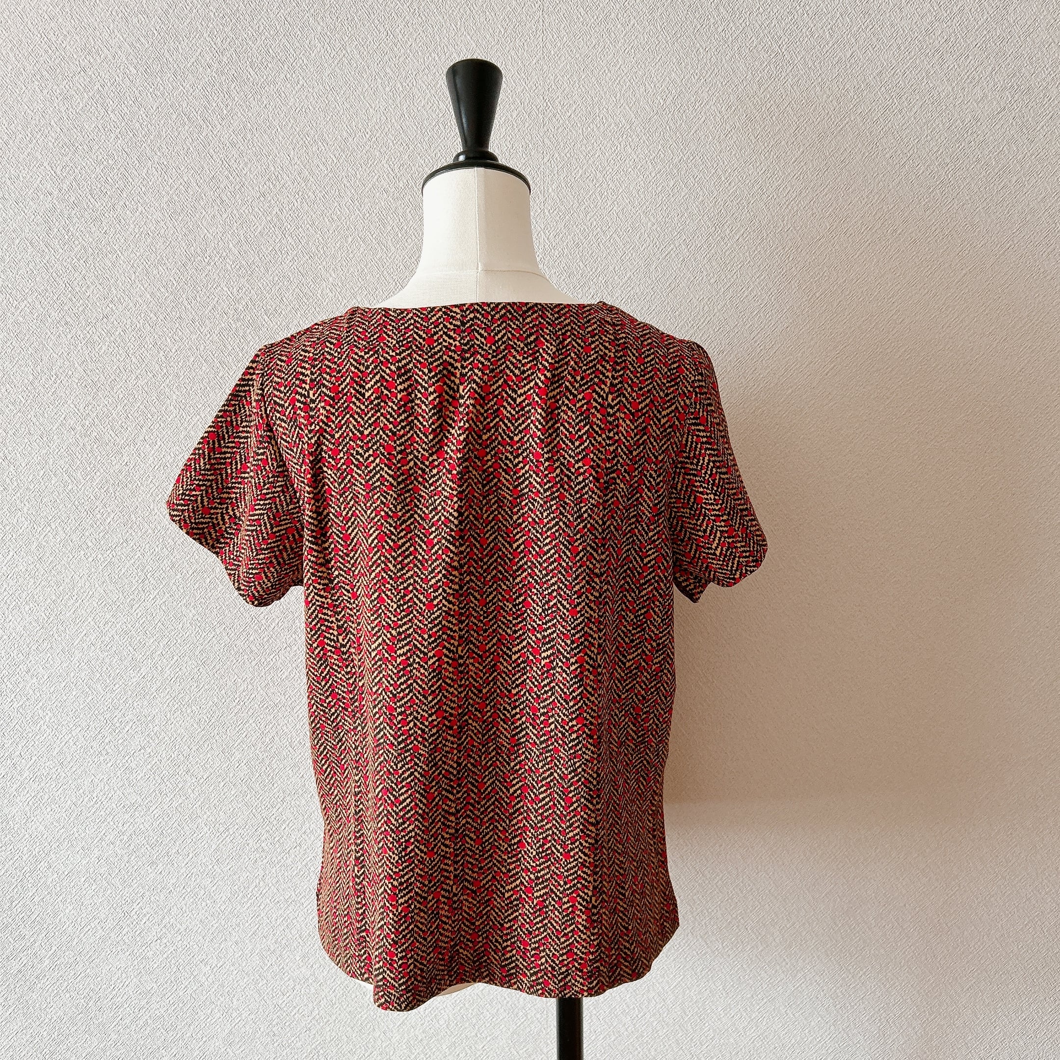 ベトナム製の「ラインモザイク柄半袖上下セット」は、シックなワイン色が素敵なラインモザイク柄が魅力のアイテムです。しっかりめの生地を使用しているため、快適な着心地を実現します。半袖のスキッパーデザインはカジュアルでありながらも洗練された印象を与え、幅広いシーンで活躍します。